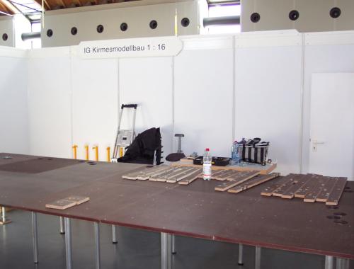 Wir bedanken uns für Euer großes Interesse und zahlreiches Erscheinenund bei der Messe Sinsheim für die tolle Veranstaltung!Unser Stand Nr.: 4334 in der -Arenain der Messe Karlsruhe22. März bis 25. MärzModellsport pur gab es vom 22.-25.März in den Messehallen der Messe Karlsruhe zu erleben. Annähernd 50.000 Besucher kamen trotz Kaiserwetter, um in die Welt der Modelle einzutauchen.Erstmals wurde von den Ausstellern ein reger Anstieg französischer Besucher registriert, womit sich der Bekanntheitsgrad der „Faszination Modellbau“ bei ihrer dritten Durchführung in Karlsruhe nun auch über die nahe Landesgrenze hinweg ausgebreitet hat.Die „Faszination Modellbau“ bot nicht nur in ihrer Vielfalt das ganze Spektrum des Modellsports und der Modelleisenbahn, sondern auch eine hohe Qualität.Quelle: Messe Sinsheim GmbHDer Musik-Express ist nun soweit aufgebaut!Tisch nun vorbereitet für den Aufbau der ModelleBeginn des Aufbaus der ModelleAnbringen der Verkleidungen und BannerAusstellungstisch-AufbauAusstellungstisch-AufbauBegeisterung pur!Aufbau der ReihengeschäfteAuch die Eisenbahner sind sehr interssiert!Echt tolle Sache!Der Chef beim rekommandieren“Bitte einsteigen und los geht`s!”Der ModellkirmesplatzViel Andrang am SamstagUnd auch Sonntags war voll viel los!